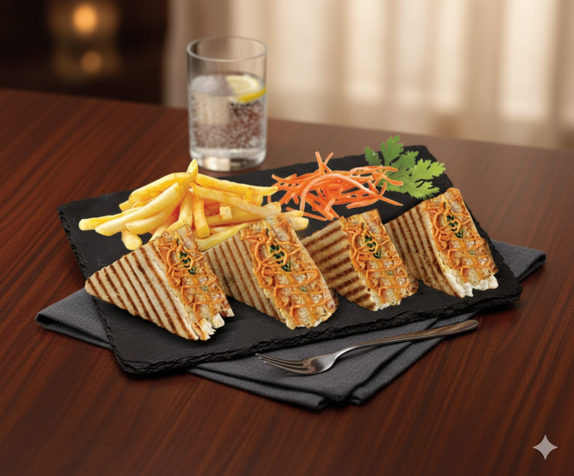 Taste the rich fusion of Italian and classic flavors in our Calzoni Club Sandwich, freshly crafted at Twenty Four Cafeteria. Filled with grilled chicken, melted mozzarella cheese, fresh vegetables, and our signature tangy sauce, each toasted layer delivers a cheesy, flavorful bite. The Calzoni-style twist gives this club sandwich a warm, savory edge that stands out from the rest.