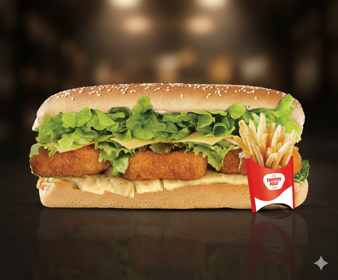 Prepared fresh at Twenty Four Cafeteria, it’s served hot and packed with taste. Enjoy Nuggets Combo Sandwich with free delivery in Al Riffa, Al Jazeera Al Hamra, Mina Al Arab, and Marjan Island, delivered warm across Ras Al Khaimah.
